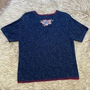 Linen cotton blend short sleeved sweater by Monterey bay clothing company. Super cute knitted sweater with American flag flower on front and back. Excellent condition.