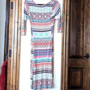 American rag multicolored stretchy 3/4 sleeve dress 100% rayon