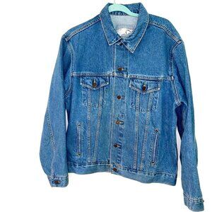 Amerifest Big Gig Denim Trucker Jacket Mens Blue Hat Logo Cotton Button Front