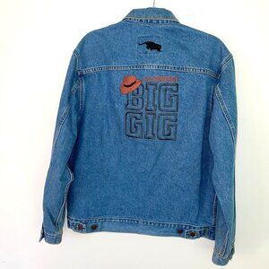 Amerifest Big Gig Denim Trucker Jacket Mens Blue Hat Logo Cotton Button Front Pockets