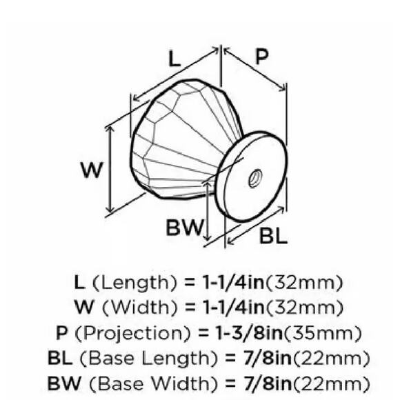 Product Dimensions 1.25"L x 1.25"W x 1-3/8" Front To Back Projection