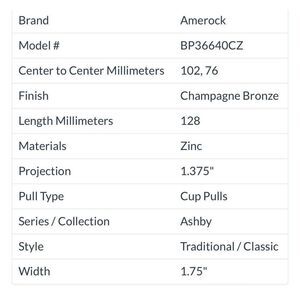 Amerock brand cup pull for cabinets and drawers. Champagne bronze finish.