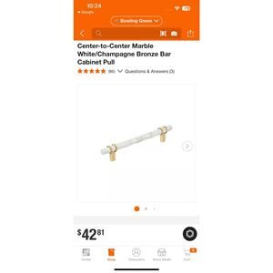 Amerock BP36650MWCZ Carrione 6-5/16” 160mm C To C Bar Cabinet Pull Marble NIB