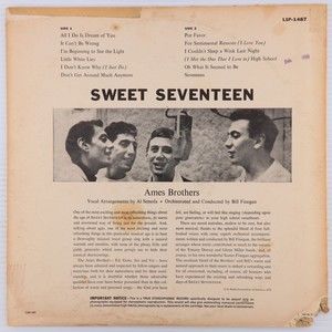 Ames Brothers w/ Bill Finegan Sweet Seventeen 1958 Stereo 12" LP Record LSP-1487