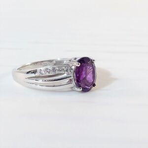 Genuine Amethyst 1.6 Carats Ring & White Zircon Accents Size 8