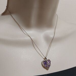 Amethyst And Diamond Heart Pendant Sterling Silver Necklace 925 PAM Italy