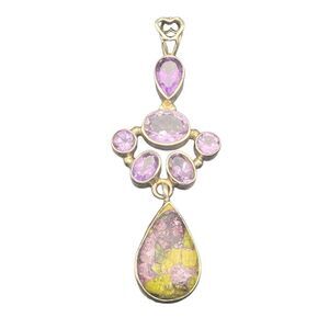 Amethyst Atlantisite Pendant with sterling silver 925 with multiple gems and dro