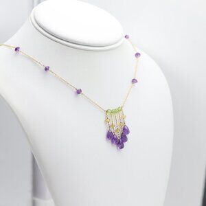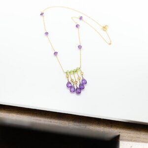 Amethyst Beaded Necklace 14k Yellow Gold Dangle Bead Necklace #001