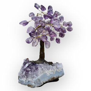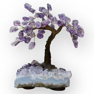 Amethyst Bonsai Crystal Tree Of Life Geode Base Gemstone Chakra Tree 7" Tall (E)