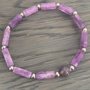 Amethyst Bracelet Beaded Natural Stone Purple Handmade Stretch Healing Bracelet