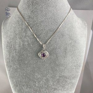Amethyst & CZ 925 Solid Sterling Silver Pendant