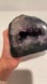 Natural Dark Purple, Amethyst Cathedral from Brazil. Perfect for a bedside crystal to put on your nightstand. The front of the amethyst is polished and the rough backside is painted black with a sheen. This rare find will bring a new dimension and meaning to your crystal collection. This unique natural stone specimen has natural fractures and a calcite crystal point nestled in the bottom left of the cathedral.