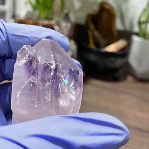 I have two pieces of Amethyst, I took pictures to show you the many rainbows each piece has. They are polished and raw in spots. Both are self healed.