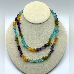 Amethyst Citrine Peridot Beaded Necklace, Mix Semi Gemstone jewelry 35” Necklace