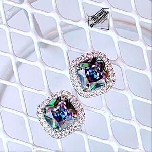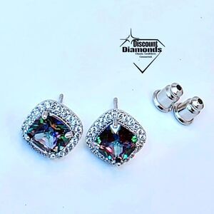 Amethyst & Clear White Baguette Diamond Stud Earrings on 925 Sterling Silver