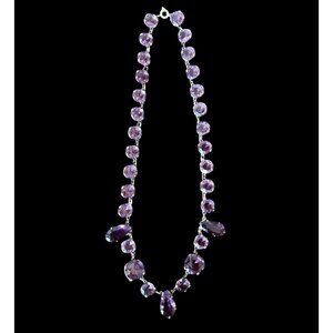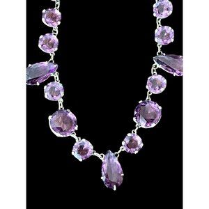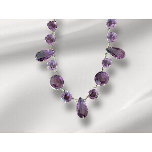 Amethyst Colored Rivière Necklace With Teardrop Accents 15” Glass Crystal