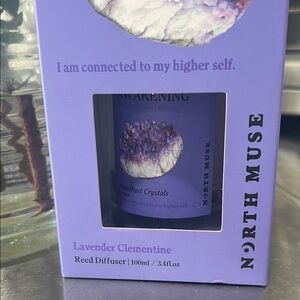 Enhance your space with the Amethyst Crystal Awakening Kit. This set includes a beautiful amethyst crystal filled diffuser and black diffuser reeds tranquility to your home.