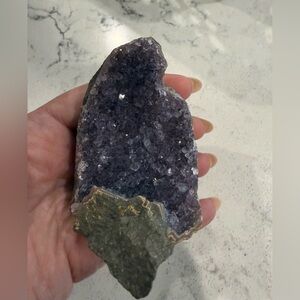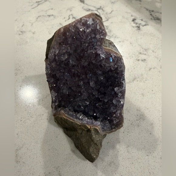 Beautiful amethyst cut base with sparkling purple crystals. Perfect for home decor or collection. 3 inches