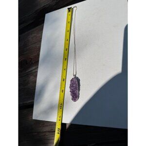 Amethyst Druzy Crystal Pendant Necklace Sterling Silver Chain - New Old Stock