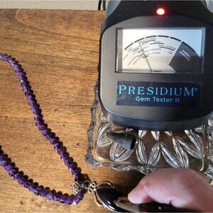 Beautiful amethyst necklace with magnetic clasp. The beads that make up the chain are faceted. The pendant amethyst is smooth and deep in color. The pendant is sterling silver, maker is unknown.