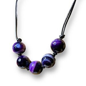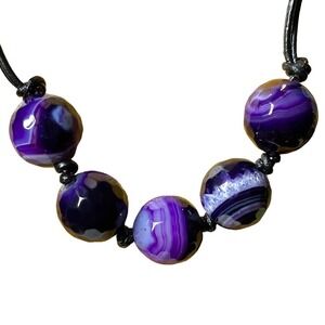 Amethyst Faceted Orbs Necklace on Leather Chords - Sterling 925 Lobster Clasp