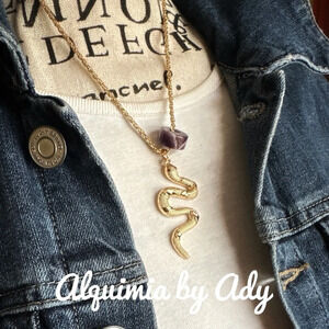 Amethyst February birthstone donut snake pendant gold necklace