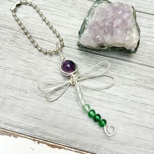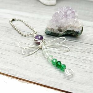 Amethyst Gemstone Beaded Dragonfly Bag Charm, 4"