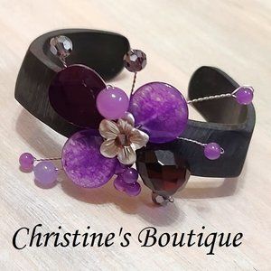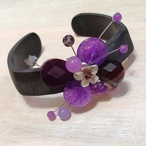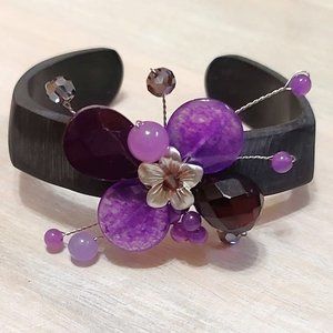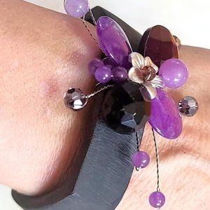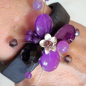 Amethyst Gemstone, Crystal and Glass Wood Cuff Bracelet