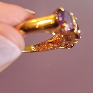 Amethyst Gold Plated Sterling Silver Ring! Stamped 925 China. Size 8.