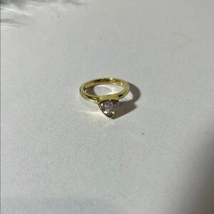 This exquisite ring showcases a stunning purple stone set in a classic gold band. The smooth, polished finish enhances its sophisticated appeal, making it a perfect accessory for any occasion. Size 7.5