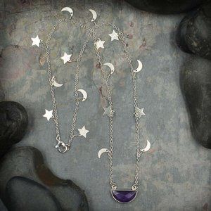 Amethyst Half Moon Pendant on Moon and Star Chain
