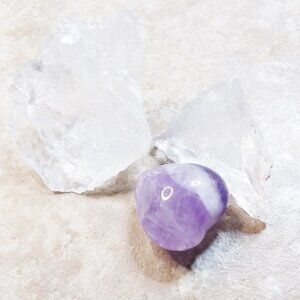 Use this Amethyst & Quartz Amplifyer Bundle to enrich & beautify your Altar or Prayer Corner, or to enhance your meditations, focus + mindfulness exercises, Law of Attraction Affirmations, and more. The heart makes a perfect touch stone - something to move through your fingers while you meditate, keep in your pocket to help remind you to stay cool, calm + collected, and in control of your feelings and reactions.
