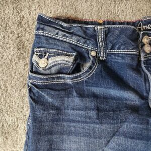 Amethyst Jean Shorts Womens Size 11 Cut Off Blue Denim Low Rise Embellished