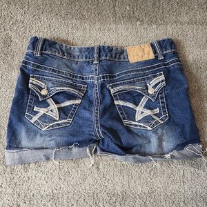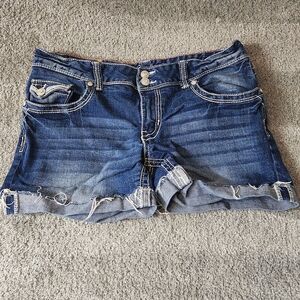 Amethyst Jean Shorts Women's Size 11 Cut Off Blue Denim Low Rise Embellished