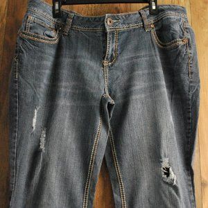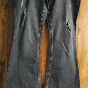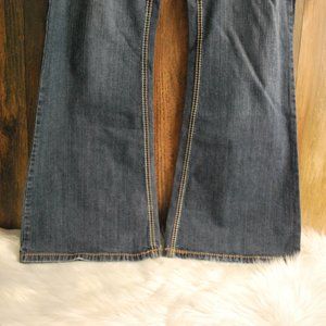 Stylish boot cut jeans. Features classic stitching. Perfect for casual wear. they have been hemmed to 32” length