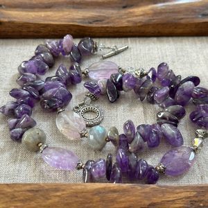Beautiful Amethyst Stone Beaded Sterling Silver Necklace with Ornate Toggle