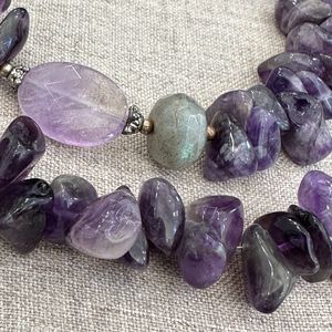 Amethyst Labradorite Beaded Sterling Silver Necklace 19" Toggle Clasp Purple VTG