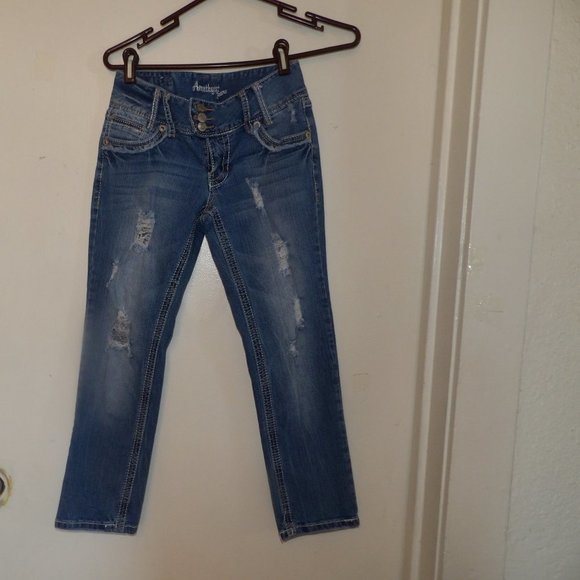 Amethyst Low Rise Distressed Straight Leg Crop Jeans Sz 3