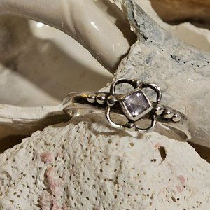 Amethyst Mini Square Ring - Size 7.5 - Diamond shaped stone set in center of Square pattern