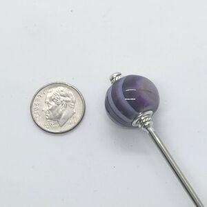 Amethyst Monarque Stainless Steel Hair Stick Natural Gemstone 1 of a Kind