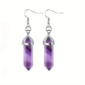 Amethyst Natural Stone Gemstone Handmade Hexagon Point Dangle Earrings