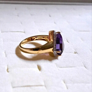Command Attention With This Unique Natural Amethyst & Natural White Zircon Men's Ring 14k Yellow Gold Vermeil Over 925 Sterling Silver.
