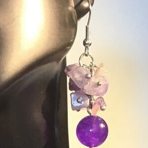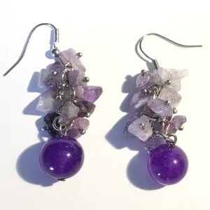 Amethyst Nugget and Purple Stone Drop Pierced Earrings
