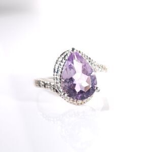 Genuine Amethyst Pear 3.4 Carat Ring Size 7