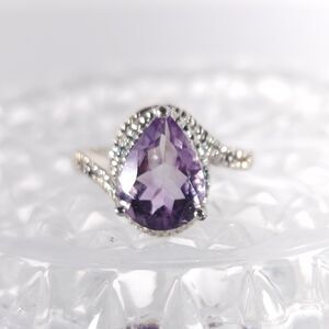 A striking pear cut amethyst ring for your jewelry collection.