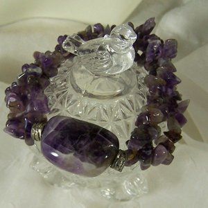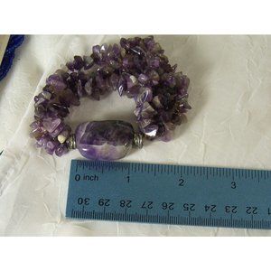 Amethyst Polished Stone and Chips Stretch Three Strand Bracelet