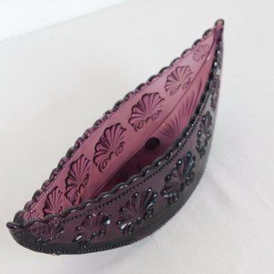 Amethyst Pressed Glass Console Bowl Half Moon Shell Scroll Starburst Vintage