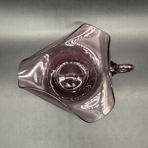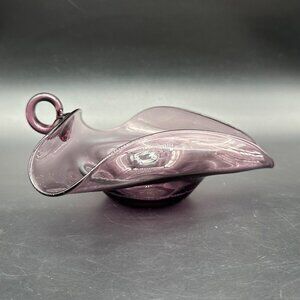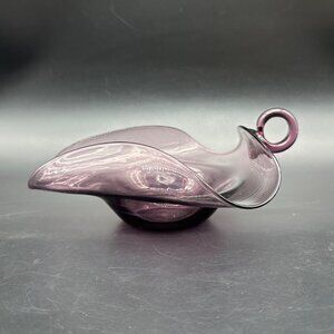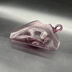Amethyst Purple Hand Blown Glass Nappy Dish Bowl Loop Handle Decorative