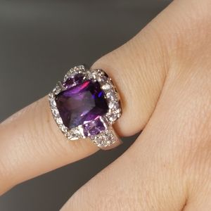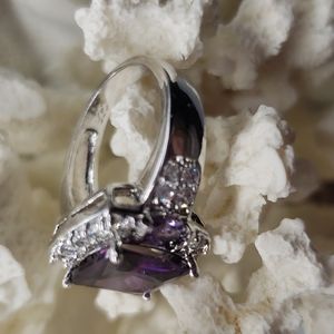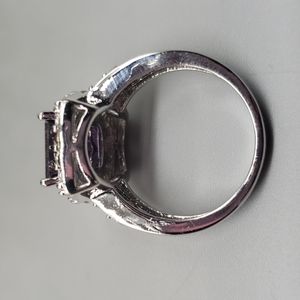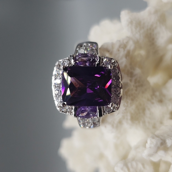 Big beautiful lab created amethyst stone surrounded by sparkly cz stones Size 6.75