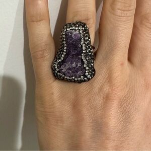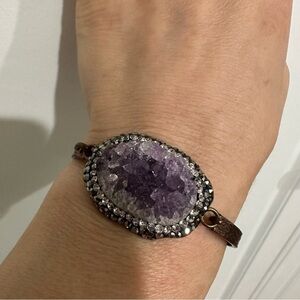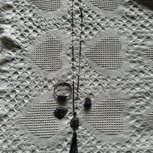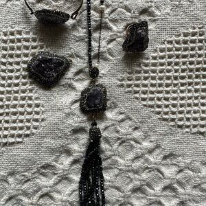 Amethyst ring, bracelet, ring set with copper material. Ring is adjustable, necklace is long length, bracelet comes with two stones and they are removable.